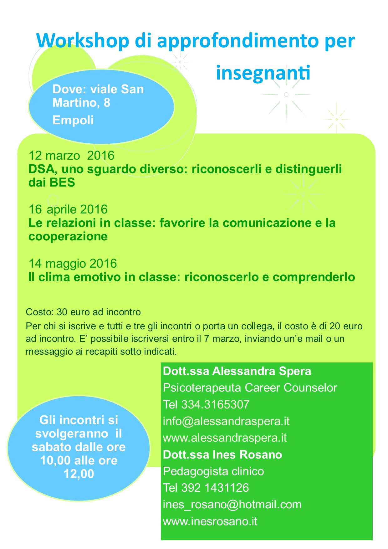 Costo: 30 euro ad incontro. Per chi si iscrive e tutti e tre gli incontri o porta un collega, il costo è di 20 euro ad incontro. E’ possibile iscriversi entro il 7 marzo,
